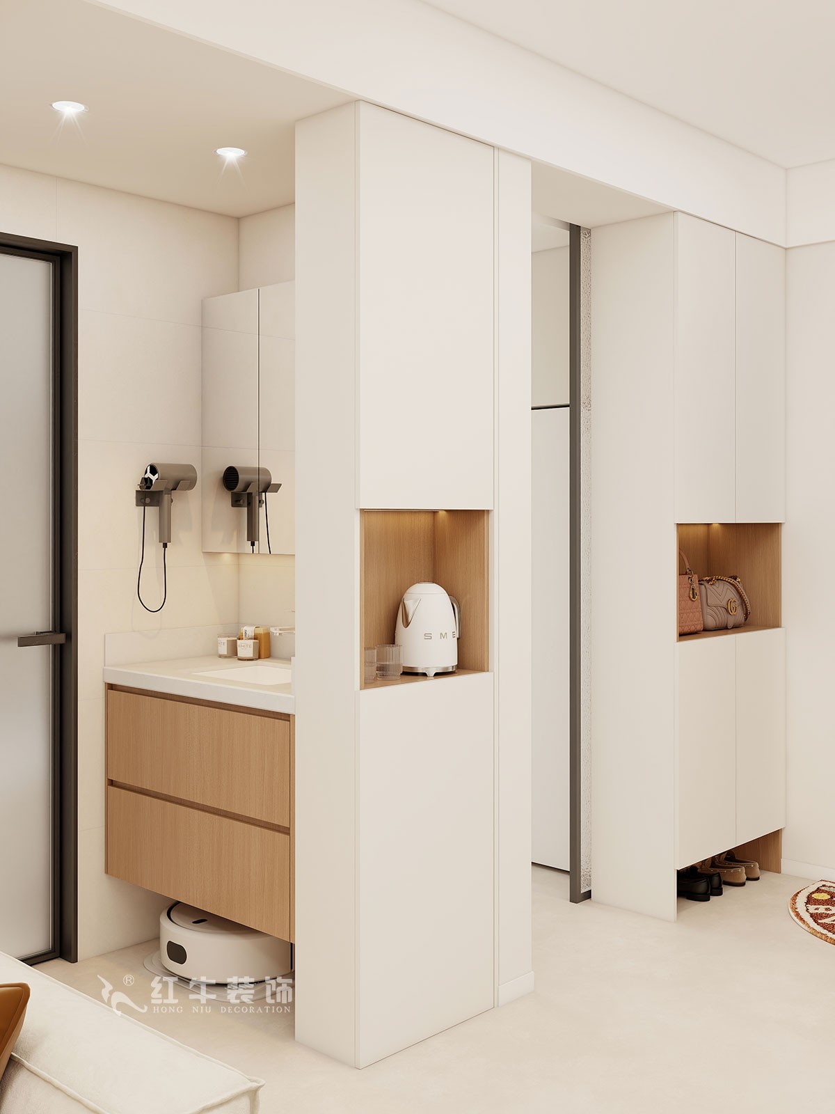 本案簡約風(fēng)格,客戶需求增加儲(chǔ)物功能,在設(shè)計(jì)過程中方案墻體改動(dòng)不多,可以滿足基本需求。擴(kuò)大空間增加儲(chǔ)物功能,能夠滿足客戶所提需求。